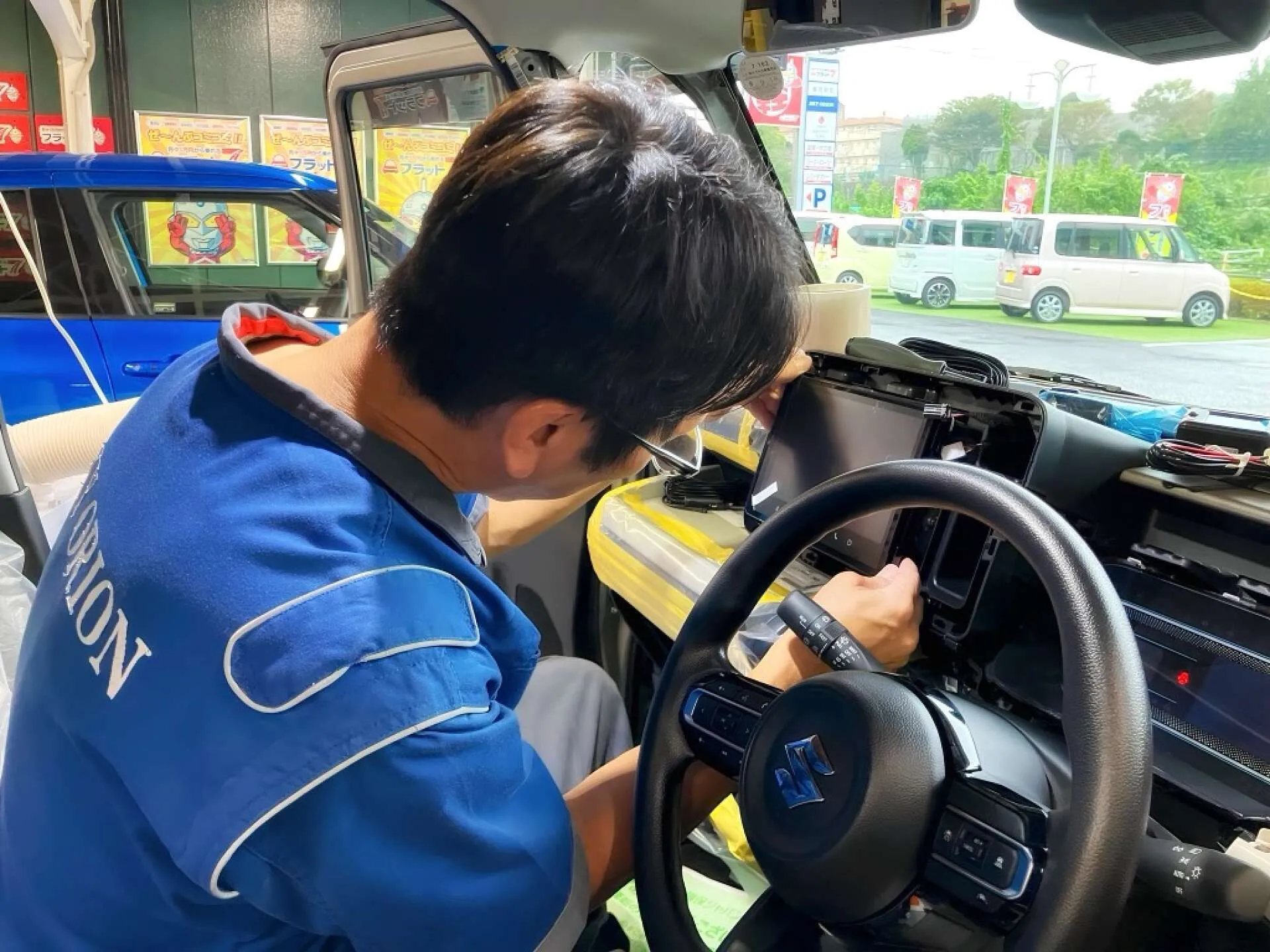 車内の作業風景が目に入ると、普段何気なく乗っている愛車も
